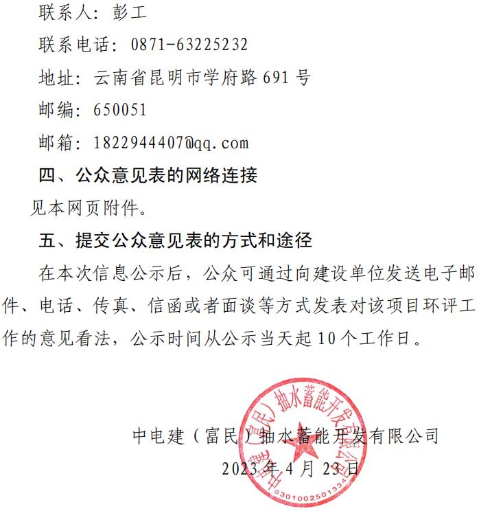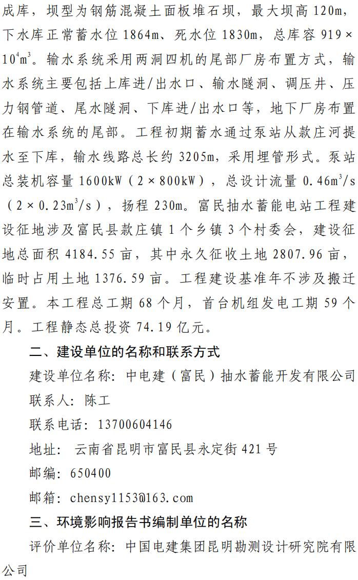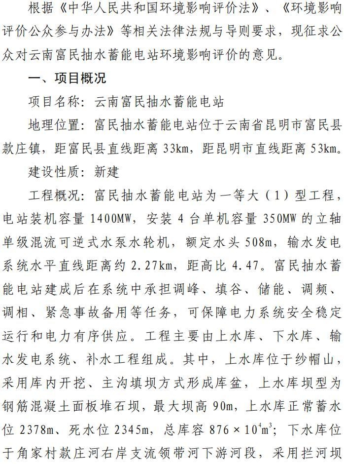 云南富民抽水蓄能電站環(huán)境影響評(píng)價(jià)第一次信息公示